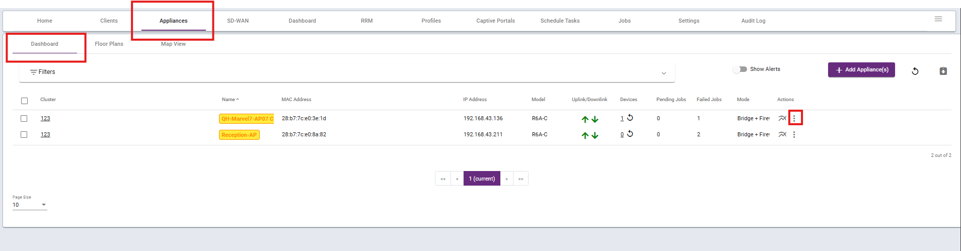 Navigate to the Dashboard under the Appliances section. Here, you will see all devices within the current cluster.
