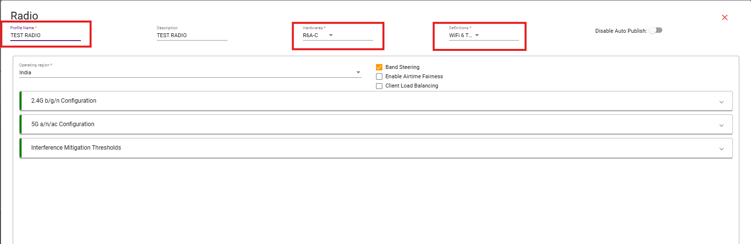 (Note: If you are configuring for the first time, you need to create a new Radio Profile. The steps for creating one are provided below.)