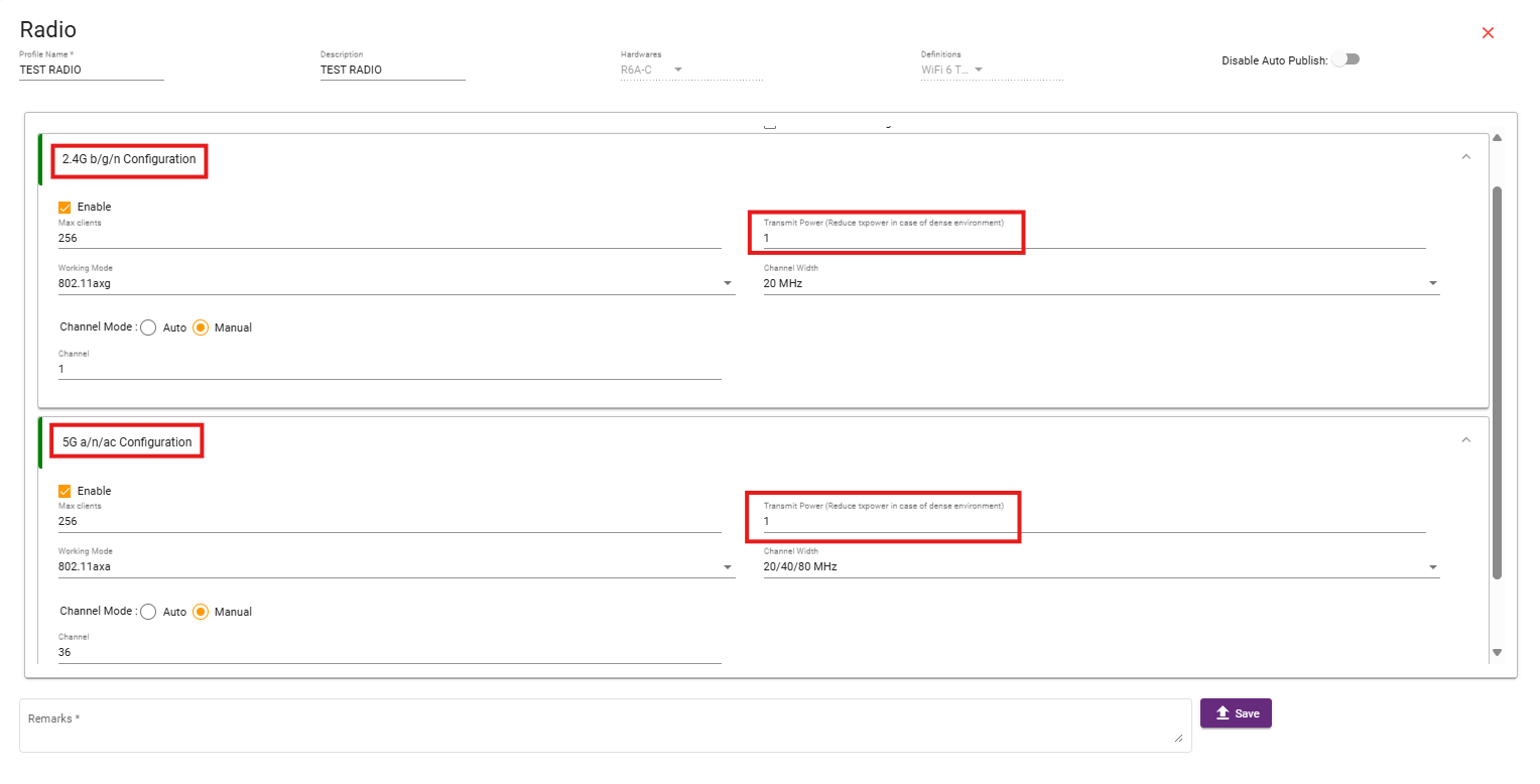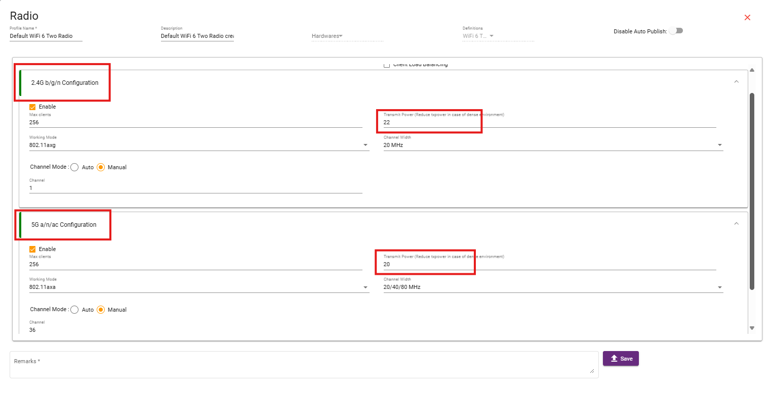 Click on the Profile and select the Radio Profile whose Tx Power you want to change.
