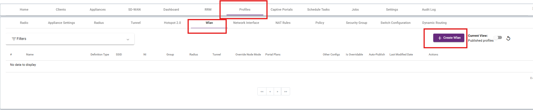 To create a WLAN go to the WLAN under PROFILES section. Click to the +Create WLAN.