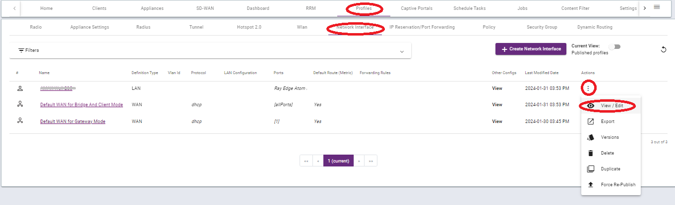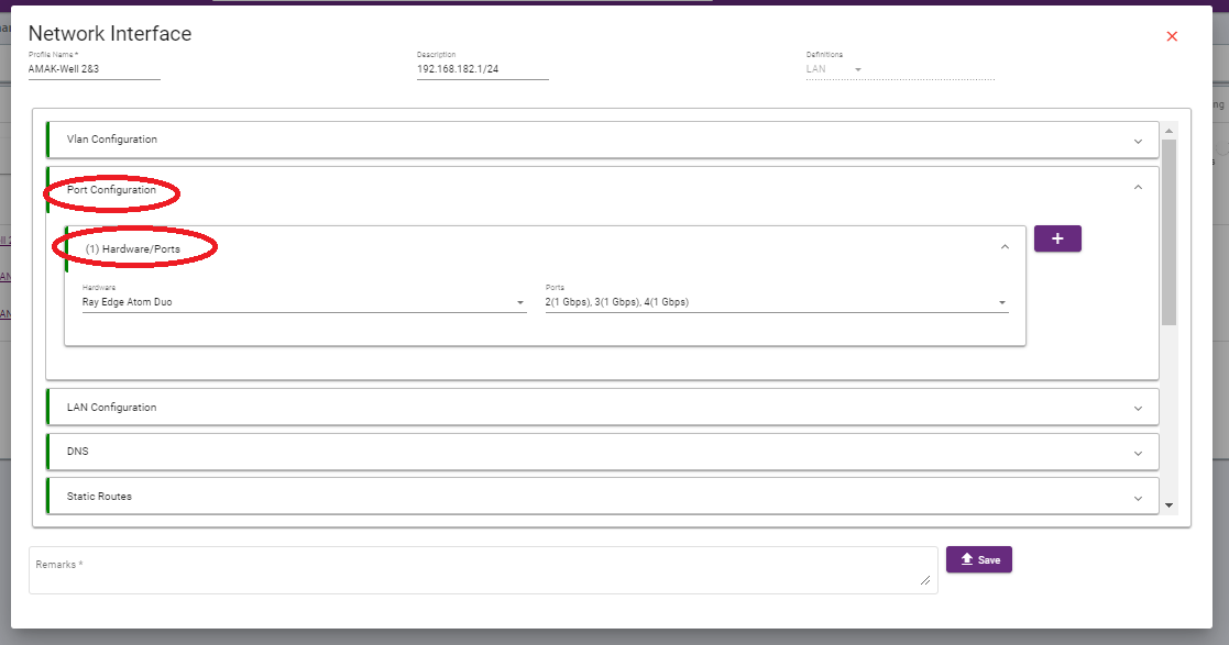 To check the hardware ports, Go to > Profiles > Network Interfaces > select profiles and click on the three dots > View and Edit > port configuration > hardware ports.
