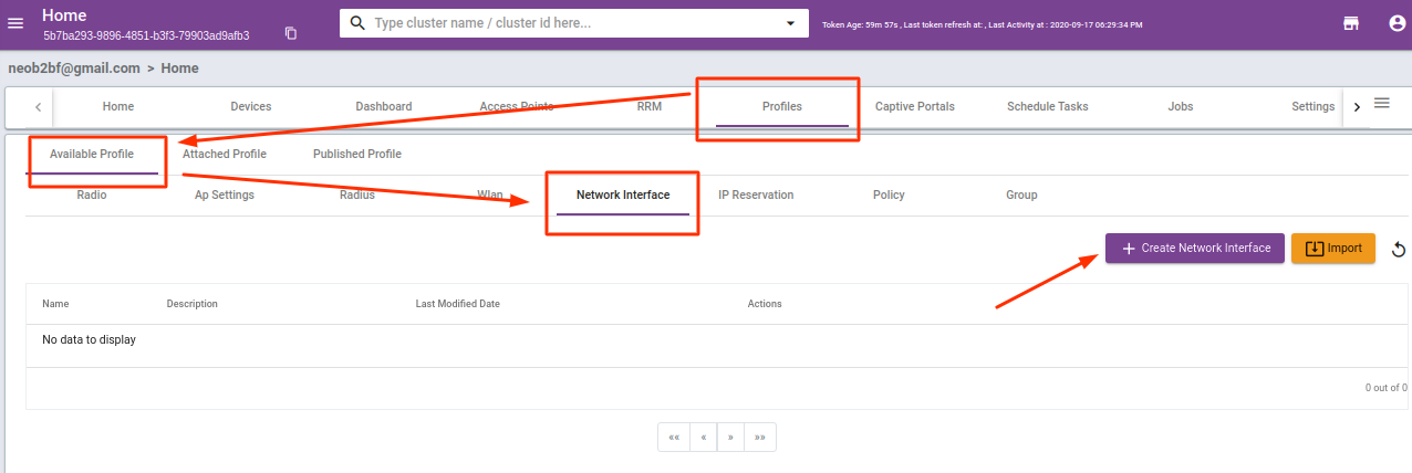 a) Go to Profile > Available Profile >Network Interface, click “Create Network Interface“.