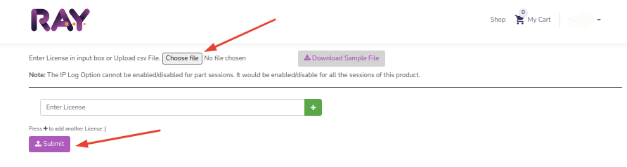 Click the “Choose file” button and upload your subscription license key CSV file and click the “Submit” button. and that will activate your services.